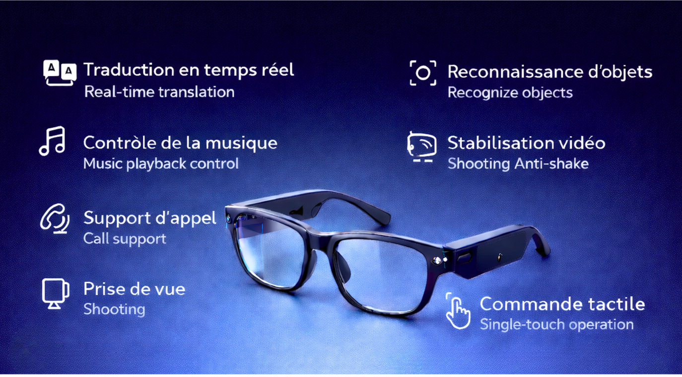 Design élégant et discret. Personne ne devine qu’il s’agit de lunettes intelligentes. La qualité audio est excellente et la traduction très naturelle.